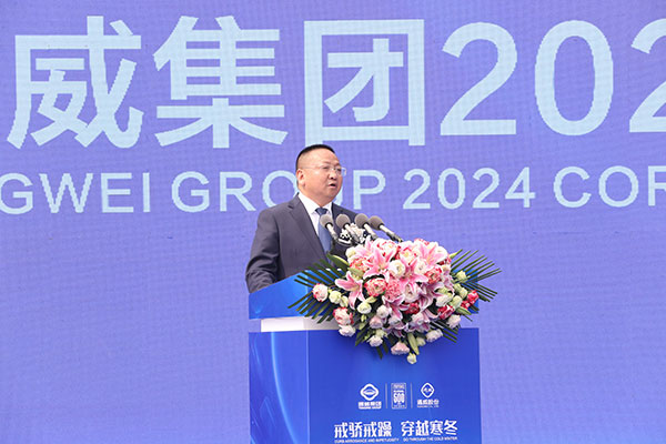 集團(tuán)企業(yè)文化建設(shè)專項(xiàng)工作小組執(zhí)行副組長、品牌管理中心副主任崔維順代表集團(tuán)企業(yè)文化建設(shè)專項(xiàng)工作小組,匯報(bào)了2023年集團(tuán)企業(yè)文化建設(shè)工作成果及2024年工作計(jì)劃,并表示,過去一年,遵照主席指示,集團(tuán)企業(yè)文化建設(shè)專項(xiàng)工作小組全面落實(shí)年度企業(yè)文化建設(shè)方案,深入實(shí)施“效率優(yōu)先 陽光正向 監(jiān)督保障”年度主題,不斷創(chuàng)新落地形式,將企業(yè)文化與經(jīng)營管理結(jié)合,使全體員工在企業(yè)文化的牽引下,提質(zhì)增效、步履鏗鏘、蓬勃發(fā)展。新的一年,集團(tuán)企業(yè)文化建設(shè)將深度聚焦“戒驕戒躁 穿越寒冬”主題和六大主線活動(dòng),持之以恒、埋頭深耕,讓執(zhí)行文化成為全體通威人潛移默化的行為準(zhǔn)則。