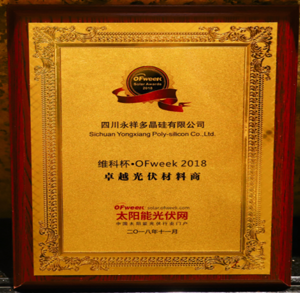 永祥多晶硅榮獲OFweek 2018“維科杯”卓越光伏材料商獎等多項榮譽