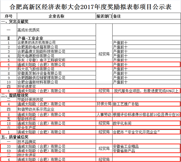 通威太陽能合肥公司入列合肥高新區(qū)2017年“工業(yè)企業(yè)產(chǎn)值前十”榜單