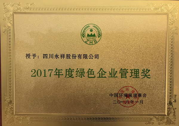 永祥股份榮獲“2017年度綠色企業(yè)管理獎”