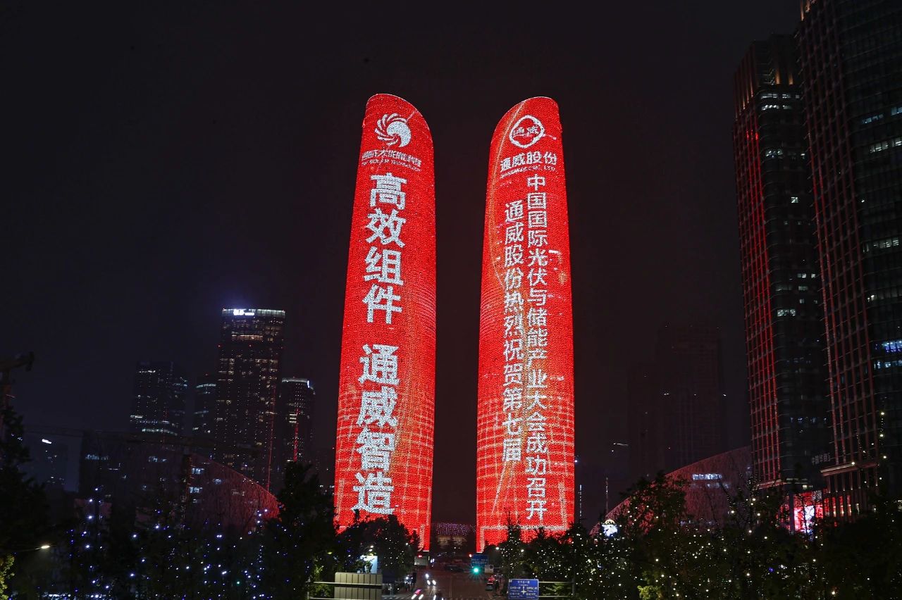 2024第七屆中國國際光伏與儲能產業大會亮相成都雙子塔,點亮蓉城夜空!