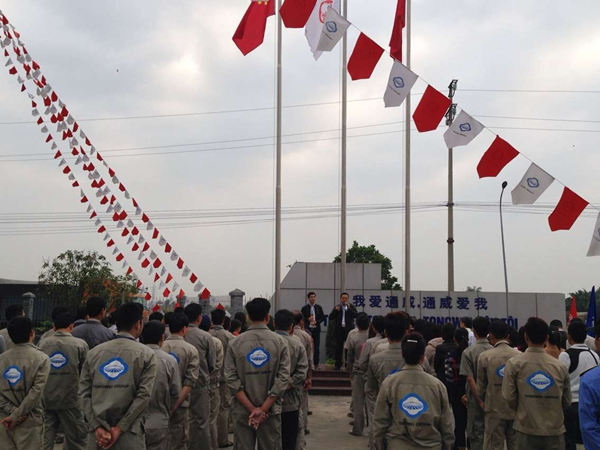 通威股份副總裁兼海外二區(qū)總裁洪睿出席海陽(yáng)通威升旗儀式