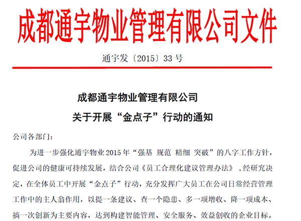 通宇物業(yè)啟動(dòng)“金點(diǎn)子”合理化建議征集活動(dòng)