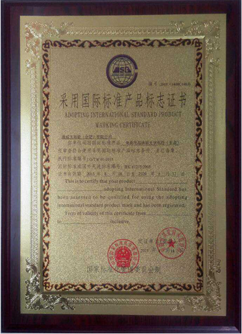 通威太陽能(合肥)公司榮獲《采用國際標準產品標志證書》