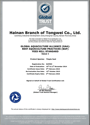 海南通威一舉通過GAA飼料廠BAP認(rèn)證