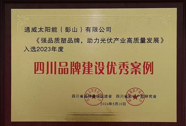 通威太陽能(彭山)有限公司榮獲“2023年度四川品牌建設優秀案例”