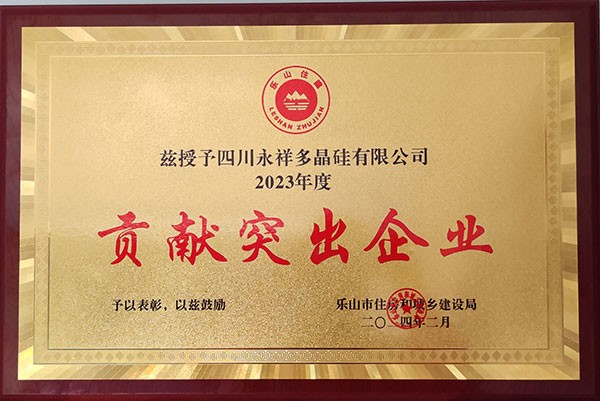 永祥新材料榮獲樂山市2023年度貢獻突出企業