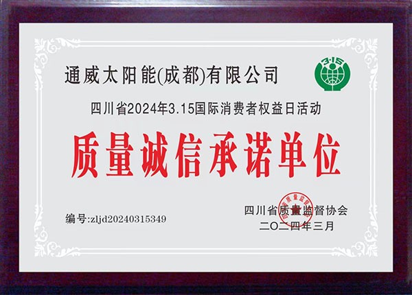 通威太陽能成都公司榮獲2024年四川省“質量誠信承諾單位”稱號