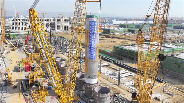 內蒙古通威硅能源精餾塔首次吊裝成功完成