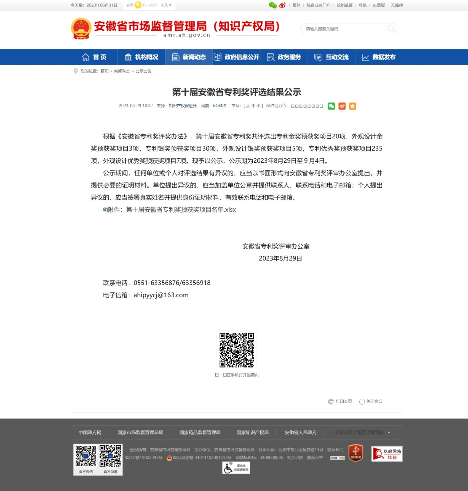 通威太陽能安徽公司榮獲第十屆安徽省專利獎優秀獎