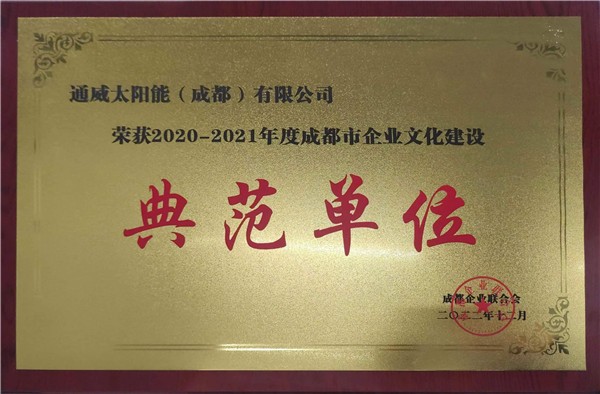 通威太陽能雙流基地再獲“成都市企業文化建設典范單位”殊榮