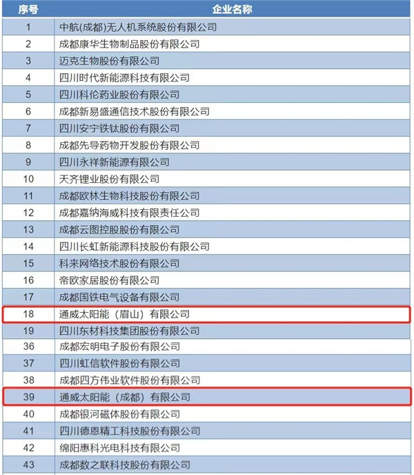 通威太陽能雙流、眉山基地同時榮列“2022年四川省新經濟100強企業榜單”