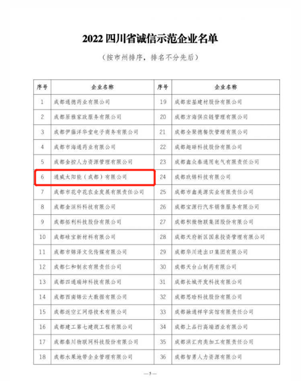通威太陽(yáng)能榮獲“2022四川省誠(chéng)信示范企業(yè)”稱號(hào)