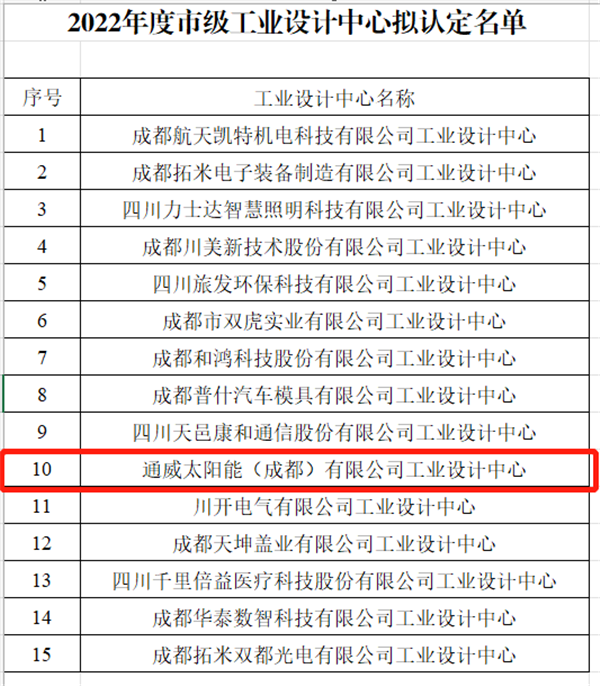 通威太陽(yáng)能雙流基地榮獲“成都市工業(yè)設(shè)計(jì)中心”稱號(hào)
