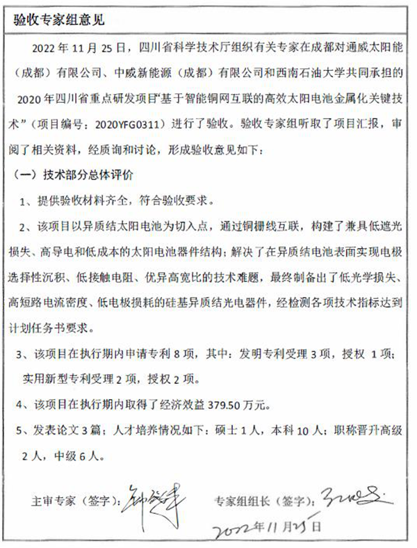 通威太陽能雙流基地順利通過“四川省重點研發項目”驗收