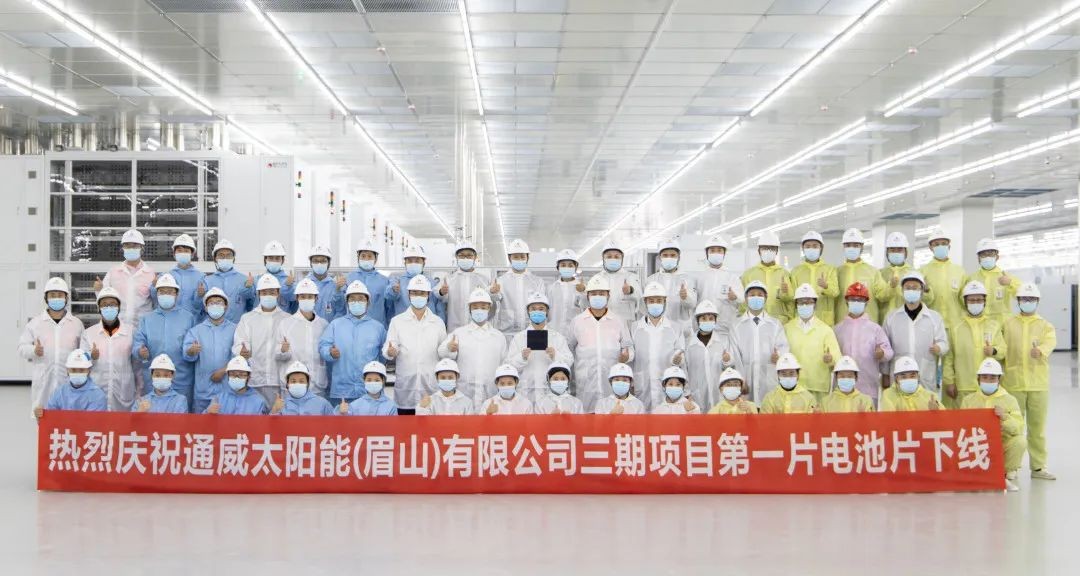 通威太陽能眉山基地三期高效晶硅電池項目第一片電池片順利下線
