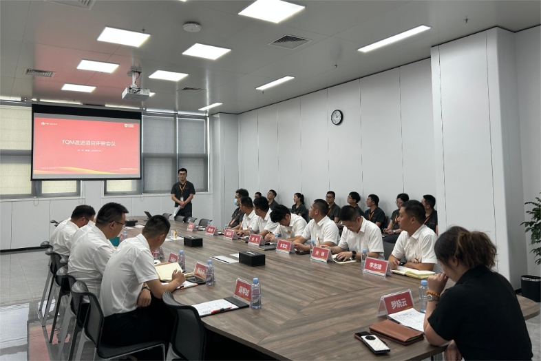 會議現場,各部門匯報代表按照會前抽簽順序依次匯報,從要因分析、制定與實施對策、效果確認、收益核算等方面展示TQM改進項目成果;現場各位評委秉承著公平公正的原則進行打分。第二季度評審會的順利結束,標志著通合公司在PERC產品方面的持續改善工作全面收尾,同時也將在TOPCon產品的優化改進道路上再次啟航!