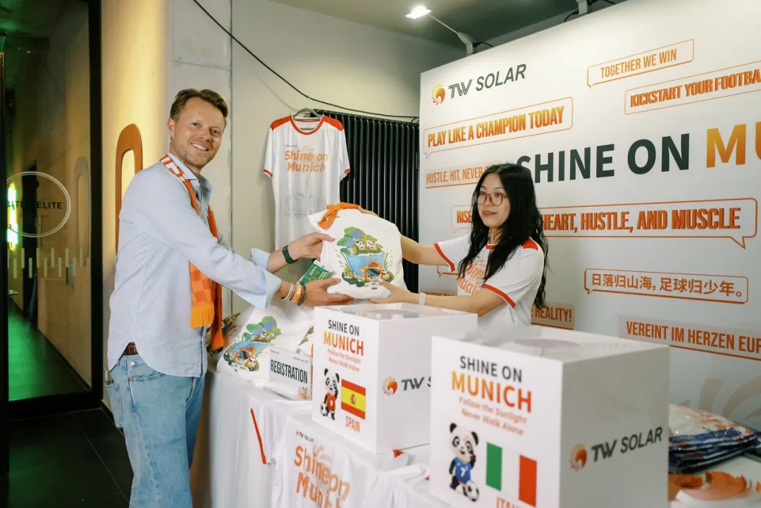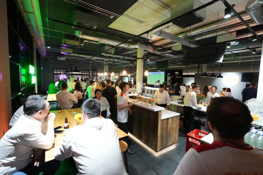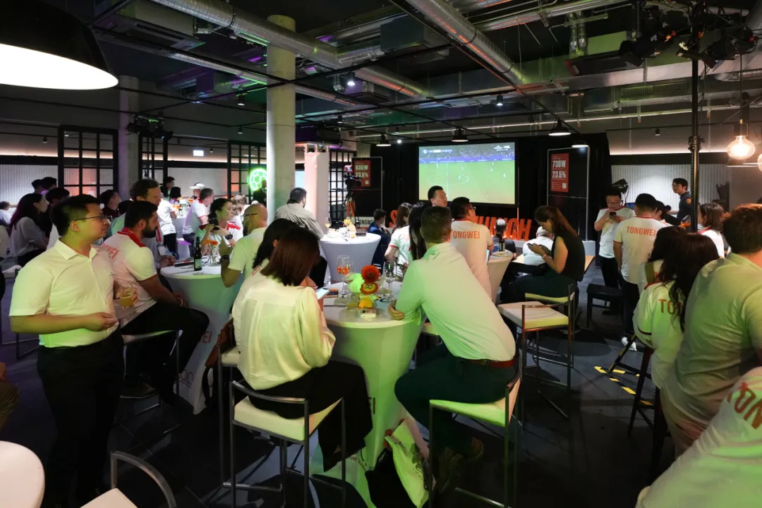 在通威橙的映襯下,慕尼黑的夜晚被點燃,通威之友身著通威球衣,一同觀看歐洲杯精彩賽事,見證通威在光伏領域的成長與成果,仿佛置身于充滿活力與激情的足球賽場,享受美食與音樂的雙重盛宴。