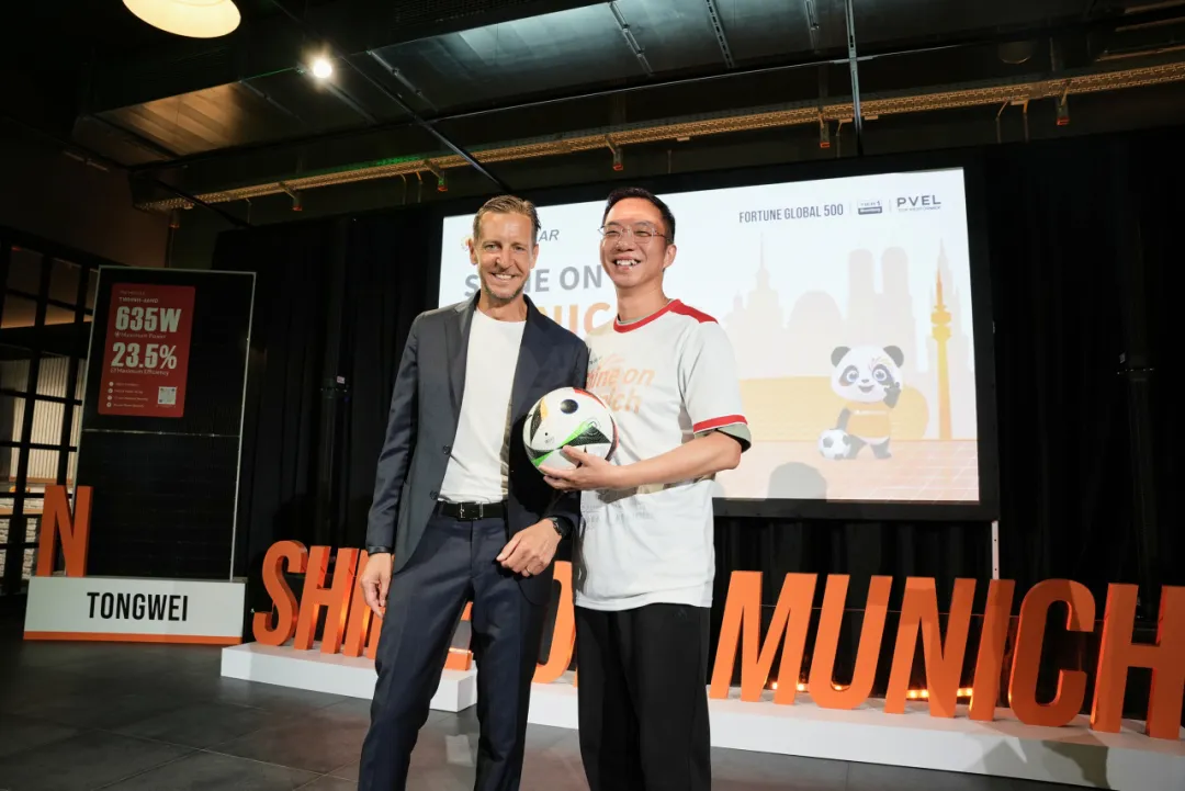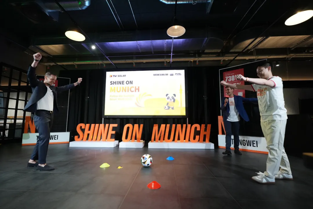 Intersolar Europe 2024,通威熱情洋溢。6月20日,恰逢歐洲杯如火如荼,通威誠摯邀請全球合作伙伴與客戶共聚通威“光伏足球之夜”晚宴,以“球”會友、以“光”繪夢,用“橙”意滿滿宴請八方來客。