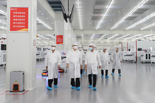 在儀式開始前,孫會(huì)長一行深入彭山公司,實(shí)地參觀了園區(qū)建設(shè)、S1電池生產(chǎn)車間、職工之家等,詳細(xì)了解了公司的生產(chǎn)經(jīng)營情況,并對(duì)公司的高效現(xiàn)場(chǎng)管理、智能化生產(chǎn)流程以及“以人為本”的企業(yè)文化打造給予高度評(píng)價(jià)。