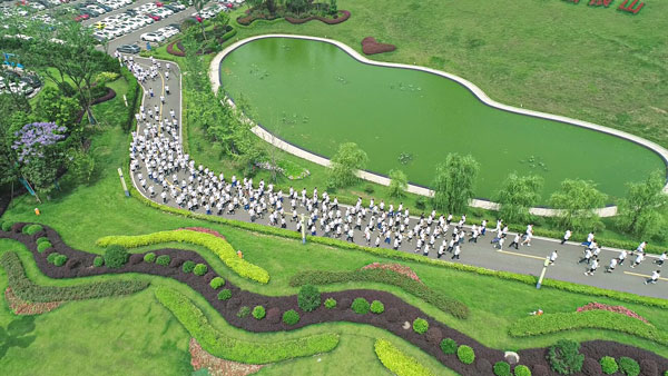 11點20分,隨著鳴笛一響,大家在李斌總的帶領下,疾馳而出。一個個矯健的身影如同跳動的音符,共同踏響“奔跑交響曲”。400余名參跑員工按既定的線路,奔跑在廠區的綠道間,伴隨著設備運轉的聲音和炙熱的陽光,永祥新能源花園式廠區的風景一步步映入眼簾,參跑選手仿佛與永祥齊跑,與光伏同行。