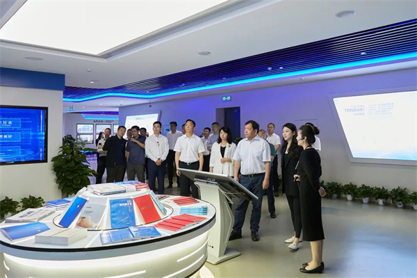 在通威體驗中心,來賓詳細了解了通威多年的發展歷程,對通威在綠色農業、綠色能源的發展成果給予了高度贊賞。王力軍董事長對通威在新能源領域的發展與貢獻表示認可,并期待未來雙方在綠色能源領域有更深入的合作。
