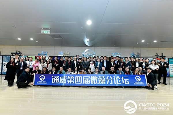 3月28日,2024第八屆中國國際水產(chǎn)科技大會平行論壇之一,通威第四屆微藻分論壇隆重舉行。大會現(xiàn)場匯聚行業(yè)專家、企業(yè)代表等重磅嘉賓,共話產(chǎn)業(yè)發(fā)展趨勢,共享研究成果,共謀高質量發(fā)展之路,進一步助推微藻產(chǎn)業(yè)創(chuàng)新發(fā)展。中國科學院院士、北京大學生命科學學院教授趙進東,中國水產(chǎn)學會副理事長、通威股份副總裁張璐等領導嘉賓出席論壇,通威研究院副院長高啟平主持論壇。