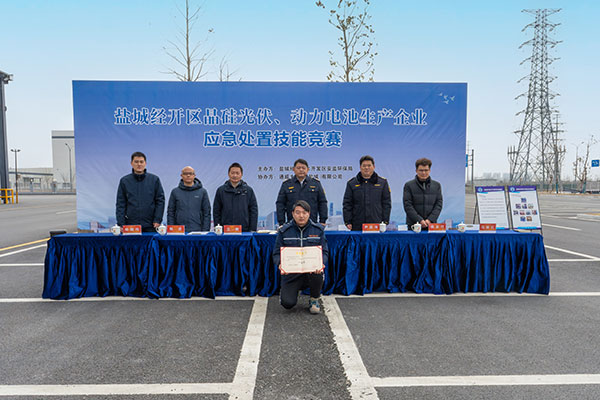 近日,由鹽城經(jīng)濟技術(shù)開發(fā)區(qū)安監(jiān)環(huán)保局主辦,通威太陽能科技鹽城基地協(xié)辦的應(yīng)急處置技能競賽在鹽城基地舉行。本次比賽由經(jīng)濟技術(shù)開發(fā)區(qū)晶硅光伏和動力電池22家生產(chǎn)企業(yè)共計100余人參賽。