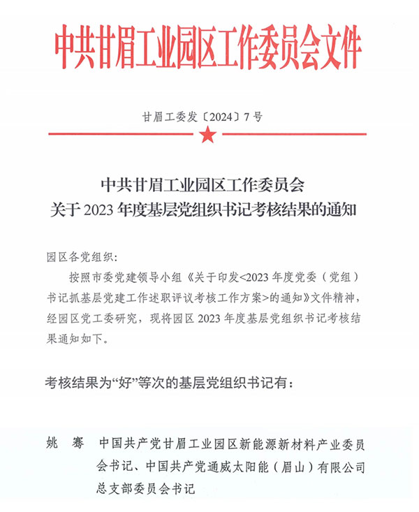 近日,通威太陽(yáng)能眉山基地黨總支書記姚騫被甘眉工業(yè)園區(qū)黨委評(píng)為“2023年度優(yōu)秀基層黨組織書記”,進(jìn)一步肯定了通威太陽(yáng)能及姚騫書記在過(guò)去一年在黨建發(fā)展、團(tuán)隊(duì)管理等方面做出的優(yōu)秀成績(jī)。