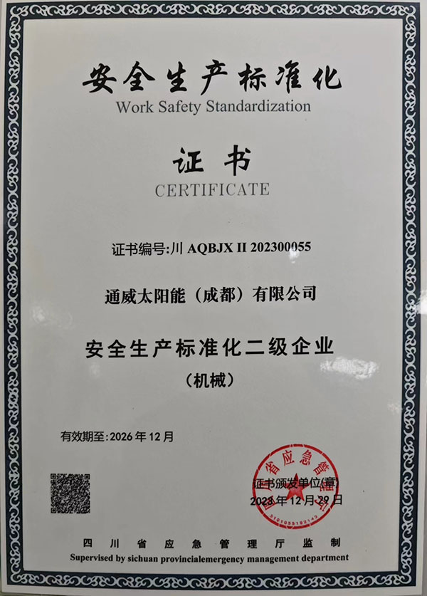 未來,通威太陽能還將繼續致力于提升安全生產水平,保障員工的生命財產安全,為可持續發展貢獻更多力量。同時,也將持續推動安全生產標準提升,爭取在等級評定中更上一層,為公司的可持續發展貢獻力量。