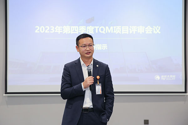 為促進(jìn)全體員工積極參與公司全面質(zhì)量管理,激勵(lì)全員持續(xù)改進(jìn),達(dá)到降本增效的效果,1月19日,通威太陽(yáng)能雙流基地順利召開(kāi)2023年第四季度TQM項(xiàng)目評(píng)審會(huì)議,雙流基地總經(jīng)理助理徐濤及各廠部相關(guān)負(fù)責(zé)人出席會(huì)議。