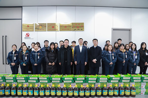 慰問組一行親切地與郭總交談,衷心感謝過去一年公司廣大干部員工的辛勤工作和默默奉獻,為金堂縣經濟社會發展做出的積極貢獻。郭總代表公司感謝上級工會組織的關心,表示將繼續努力踐行金堂實施綠色低碳產業建圈強鏈行動,為打造綠色制造先鋒城市繼續貢獻力量。隨后,慰問組將米、油、牛奶等慰問品送到員工的手上,向他們致以節日的問候和誠摯的祝福。