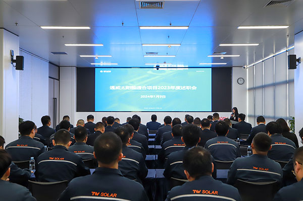 砥礪奮進(jìn)創(chuàng)佳績,戮力同心續(xù)華章,1月9日,通威太陽能通合項(xiàng)目順利召開2023年度中干述職會議,通威太陽能總經(jīng)理周華、副總經(jīng)理宋梟、總經(jīng)理助理陳君,通合新能源總經(jīng)理助理羅曉云、郭寬新及各部門負(fù)責(zé)人及核心骨干代表出席本次會議。