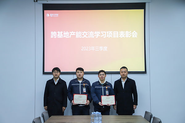 通過此次跨基地產能交流學習活動,充分調動了員工的提產優化積極性,促使個人不斷學習進步從而提升團隊能力水平及核心競爭力;每個基地在交流學習過程中攜手并進,優勢互補,共同促進通威太陽能的全面發展。