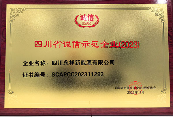12月5日,四川省市場經濟誠信建設促進會發布2023四川省誠信示范企業認定名單,永祥新能源獲此殊榮。