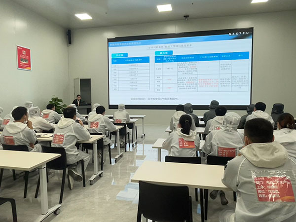 宣貫現場,各基地人力資源團隊詳細解讀了最新發布的員工綜合技能等級評定制度,針對參考條件、試題占比、錄取比例等規則變化,重點向員工開展宣貫講解,并同步也對5-8級高等級工理論試題選題范圍、晉升和降級等重要規則變化進行了重點說明,并進行現場答疑,讓員工充分了解并掌握最新的制度要求。同時,公司也鼓勵員工積極參與技能評定、加強跨工序、跨部門崗位知識學習,積極推進多能工培養,為穩步推行“三班兩倒”,持續提供人員技能儲備。
