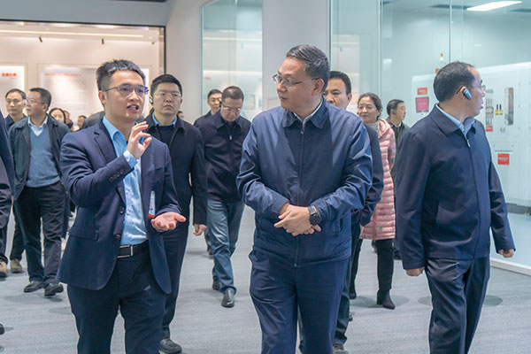 在通威太陽(yáng)能智能制造體驗(yàn)中心,調(diào)研組一行首先聽取通威太陽(yáng)能發(fā)展歷程、生產(chǎn)規(guī)模及取得成績(jī)等基本情況介紹。隨后,調(diào)研組一行駐足通威太陽(yáng)能產(chǎn)業(yè)沙盤,姚總詳細(xì)向其介紹了眉山基地的產(chǎn)業(yè)布局,并表示眉山基地始終堅(jiān)持以創(chuàng)新為驅(qū)動(dòng)、以項(xiàng)目為載體,深耕“1+3”產(chǎn)業(yè)賽道,推動(dòng)企業(yè)高質(zhì)量發(fā)展,為眉山市構(gòu)建現(xiàn)代化產(chǎn)業(yè)體系,積極貢獻(xiàn)通威力量。