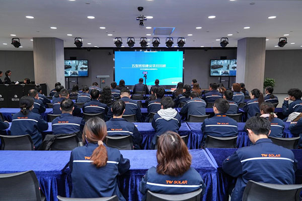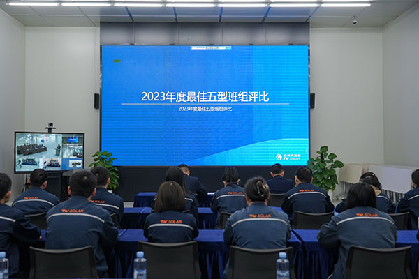 為持續(xù)打造通威太陽能高質(zhì)量五型班組,提升一線班組“技能型、效益型、管理型、創(chuàng)新型、和諧型”的建設(shè)能力,同時(shí)通過樹立標(biāo)桿,營造班組間“比、學(xué)、趕、幫、超”的文化氛圍。11月22日,通威太陽能各基地連線開展2023年度最佳五型班組評比活動,通威太陽能總經(jīng)理助理陳君,通合新能源總經(jīng)理助理羅曉云、郭寬新,通威太陽能金堂基地總經(jīng)理助理龐三鳳、彭山基地暨安徽公司總經(jīng)理助理顧峰、眉山基地總經(jīng)理助理姚騫、雙流基地總經(jīng)理助理徐濤攜各基地相關(guān)廠部負(fù)責(zé)人、人力資源負(fù)責(zé)人出席活動。
