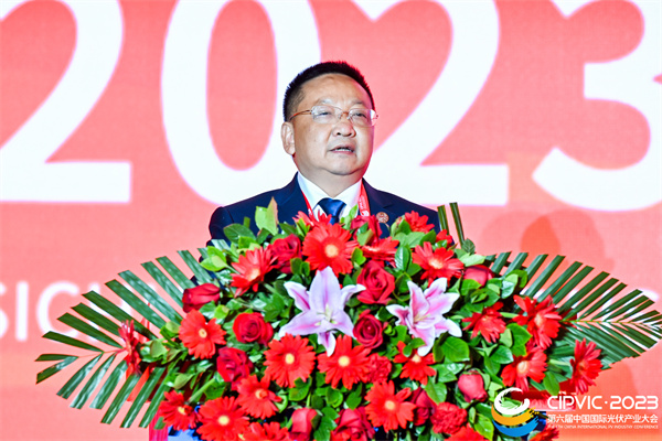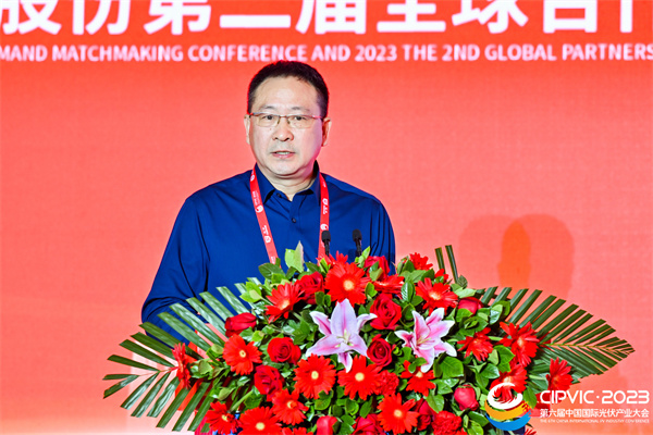 樂山市副市長張國清致辭表示,世界光伏看中國,“中國綠色硅谷”在樂山!樂山愿同大家一道擁抱光伏發(fā)展新未來,擘畫“綠色硅谷”新藍圖。一是希望圍繞全產(chǎn)業(yè)鏈,加強重大項目合作,助力延鏈強鏈、垂直整合。二是希望圍繞創(chuàng)新驅動,深化產(chǎn)學研平臺、創(chuàng)新人才等合作,攜手打造產(chǎn)業(yè)創(chuàng)新“策源地”。三是希望圍繞綠色低碳,加強節(jié)能降耗、循環(huán)利用等合作,創(chuàng)建晶硅產(chǎn)品綠色品牌。四是希望以光伏為媒,共同維護好光伏產(chǎn)業(yè)鏈、供應鏈安全和穩(wěn)定,共同推動我國光伏產(chǎn)業(yè)綠色發(fā)展、高質量發(fā)展、可持續(xù)發(fā)展。