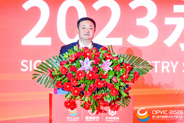 作為2023第六屆中國國際光伏產(chǎn)業(yè)大會的重磅環(huán)節(jié)之一,大會匯聚了四川省經(jīng)濟和信息化廳副廳長曾吉明,云南省保山市委副書記、市長陳銳,中國有色金屬工業(yè)協(xié)會黨委常委、副會長兼秘書長、硅業(yè)分會會長段德炳,內(nèi)蒙古包頭市人民政府黨組成員、一級巡視員王秀蓮,四川省樂山市人民政府副市長張國清,四川省廣元市副市長、蒼溪縣縣委書記張世忠,保山市人民政府秘書長張志紅,四川省蒼溪縣縣委副書記、縣長任云,四川省樂山市五通橋區(qū)委書記劉勇,內(nèi)蒙古包頭市昆都侖區(qū)委書記金永麗,四川省峨眉山市市長陳林強,云南省昌寧縣委副書記、縣長范正建,中國有色金屬工業(yè)協(xié)會硅業(yè)分會專家委副主任呂錦標,通威集團禚玉嬌總裁,通威股份董事長、CEO劉舒琪,隆基綠能事業(yè)部總裁郝凱,京運通副總裁馮震坤,晶科能源副總裁樊華,美科太陽能董事長王祿寶,高景太陽能董事長徐志群,雙良集團副總裁劉振宇,建鴻達實業(yè)集團董事長劉平建,曲靖陽光新能源董事長譚鑫,宇澤半導體董事長閆洪嘉,天合光能采購總監(jiān)鄭淑芬,晶澳太陽能采購總監(jiān)趙新諾,華耀光電采購總監(jiān)趙益峰,通威股份副總裁、永祥股份總經(jīng)理李斌出席大會。