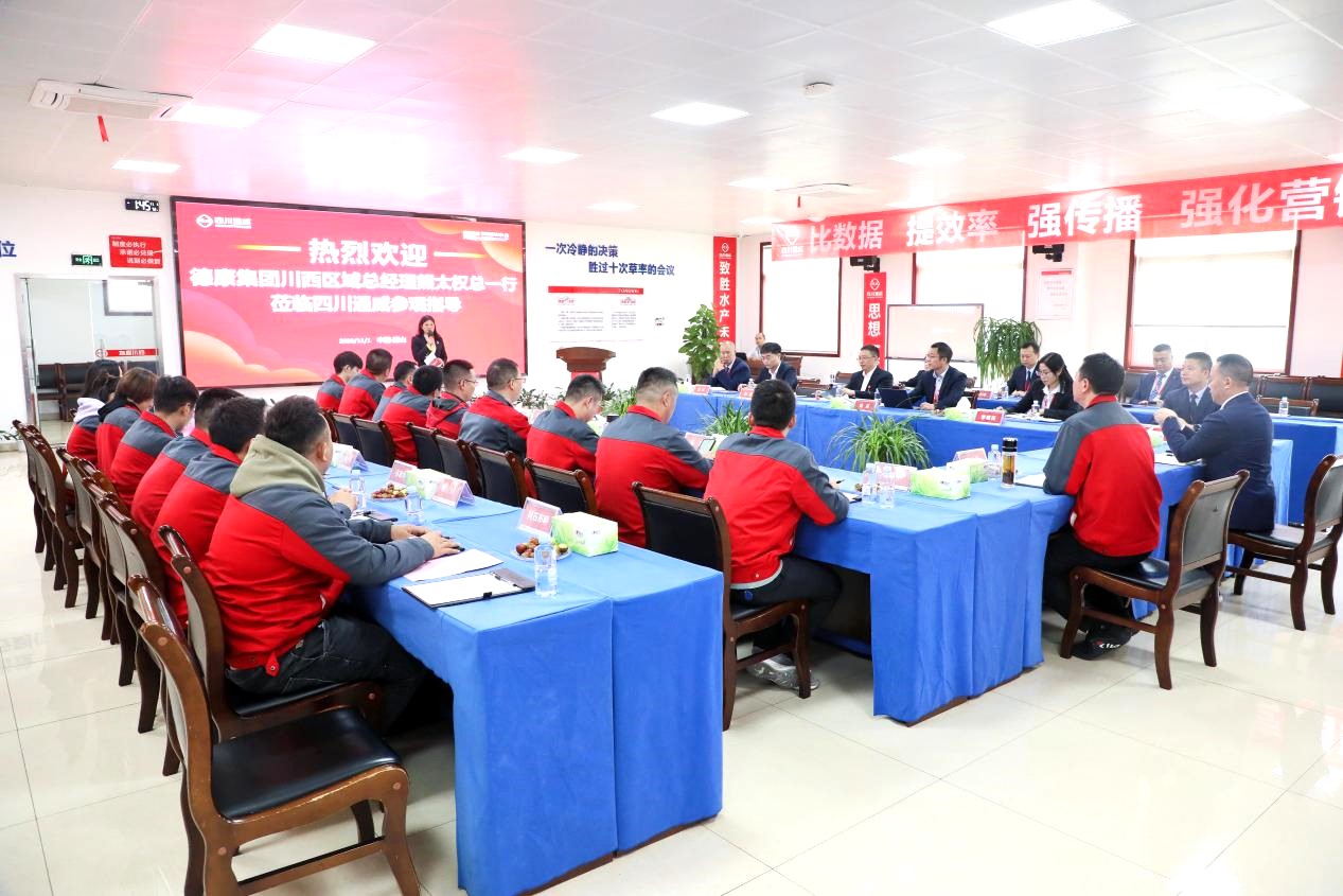 11月1日,德康集團川西區域公司總經理熊太權,副總經理游良平等一行蒞臨通威參觀交流,通威農發華西一區總經理兼四川通威總經理彭金鋼、四川通威畜禽營銷總經理馬立群、片區各職能總監和畜禽線經理等熱情接待并座談,雙方技術、財務、采購等相關部門負責人全程參與。