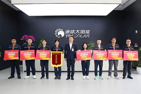 本次共計產生45個月度五型班組,相比8月增加8個班組,獎勵平均可達1400元/班組。而在第三季度的評選中,共有6個標桿班組獲評通威太陽能季度五型班組殊榮,總計獎金發放近10萬元。