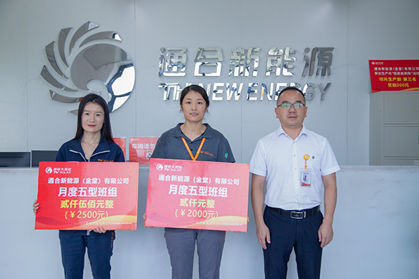 為全面提升一線班組的凝聚力、戰斗力,建設技能型、效益型、管理型、創新型、和諧型的五型太陽能制造團隊,同時為培養標桿,樹立典范,激勵全體班組不斷進步、不斷超越,持續營造比、學、趕、幫、超的良好團隊氛圍。本月,通威太陽能順利開展8月月度五型班組表彰活動,各基地負責人出席活動并為優秀班組頒獎。