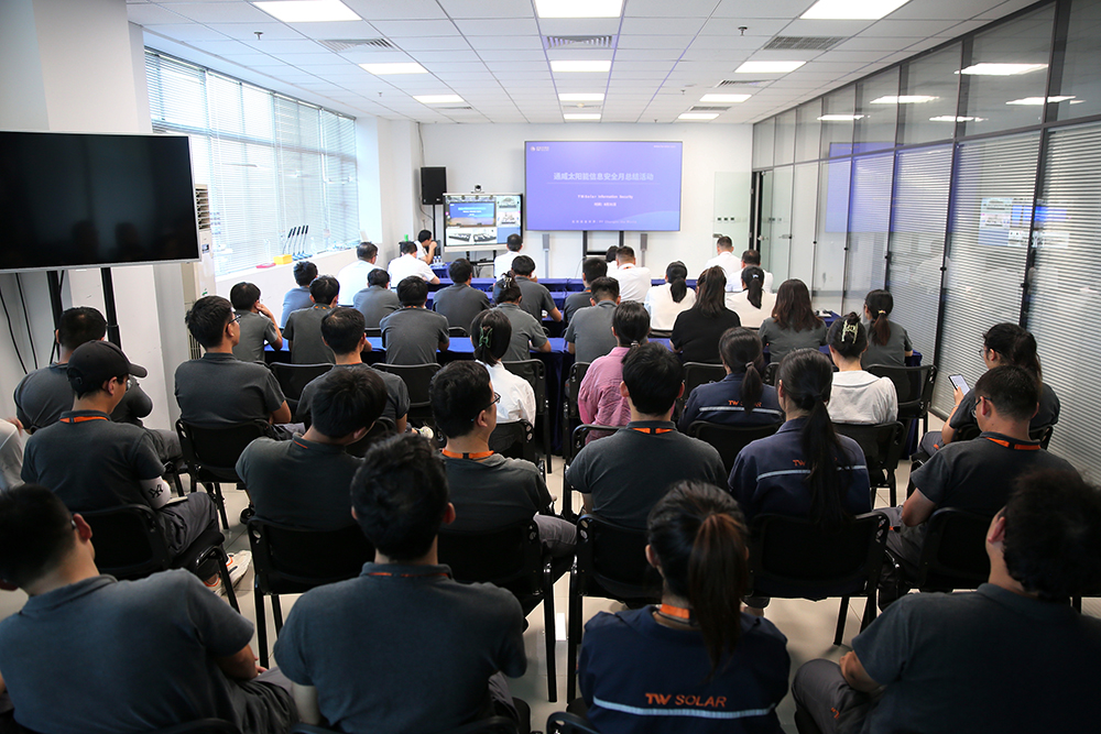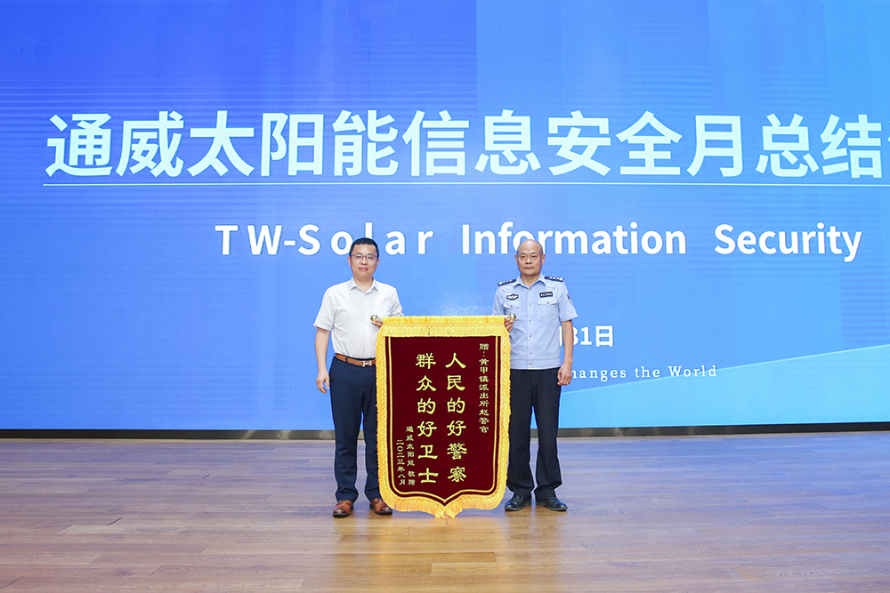 8月31日,通威太陽(yáng)能 2023 年信息安全月總結(jié)活動(dòng)圓滿舉行,此次活動(dòng)特邀黃甲派出所趙正剛警官一行蒞臨現(xiàn)場(chǎng)并開(kāi)展防詐知識(shí)宣講,通威太陽(yáng)能總經(jīng)理周華、副總經(jīng)理宋梟、總經(jīng)理助理陳君及各基地中高管團(tuán)隊(duì)、員工代表出席活動(dòng)。