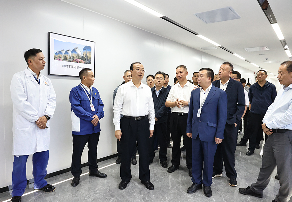 楊軍書記一行先后到二期項目建設現場、一期生產廠區、主控大廳等地視察。詳細聽取了公司二期項目建設、生產及施工智慧安全管理、5G 數字工廠建設運營等相關情況匯報。