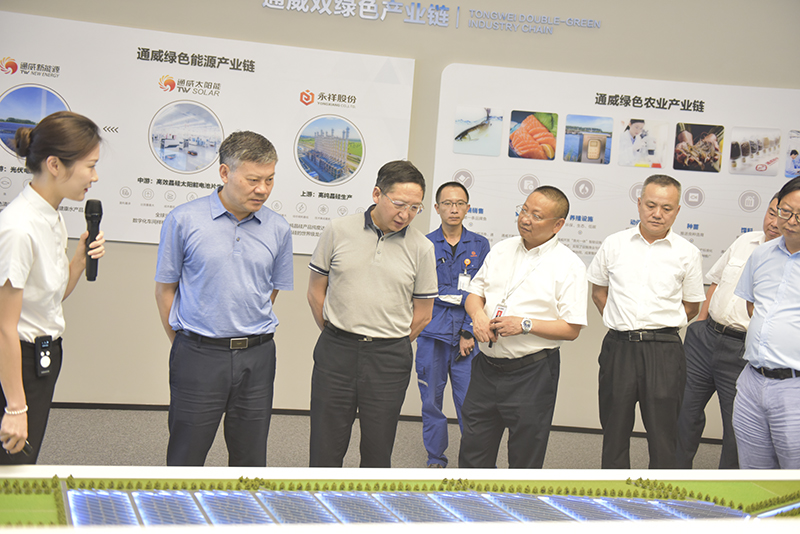 在數(shù)字體驗中心,督查組一行詳細了解永祥股份的產(chǎn)業(yè)規(guī)劃、產(chǎn)能規(guī)模、發(fā)展歷程、綠色循環(huán)經(jīng)濟產(chǎn)業(yè)鏈、精益管理及公司企業(yè)文化、資質(zhì)榮譽等情況,并詳細詢問了永祥產(chǎn)業(yè)鏈發(fā)展、在建項目工程進度和光伏未來前景等。李總就永祥在工藝技術(shù)進步取得的成績、環(huán)保工作做出的努力等方面向督查組進行詳細介紹,表示一直以來,通威永祥始終堅持綠色健康發(fā)展,在各級黨委、政府的關(guān)心和支持下,積極帶動園區(qū)產(chǎn)業(yè)鏈構(gòu)建,目前已形成光伏從上游到下游的全產(chǎn)業(yè)鏈集群,為地方經(jīng)濟騰飛與發(fā)展作出了永祥表率,為推動國家“雙碳”目標的實現(xiàn)貢獻力量。