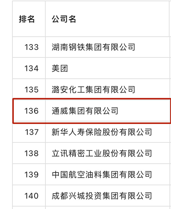 7月25日,財富Plus APP發(fā)布了2023年《財富》中國500強排行榜。憑借良好的營收及利潤表現(xiàn),通威榮列榜單第136位,較去年躍升81位。