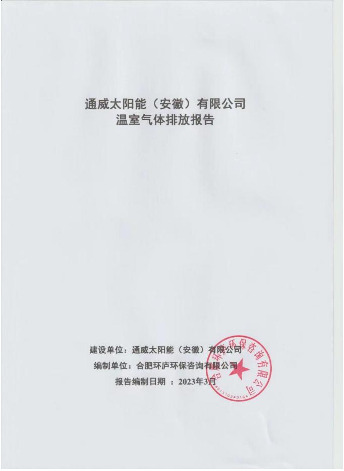 通威太陽能(安徽)有限公司產品產品碳足跡、溫室氣體核查披露