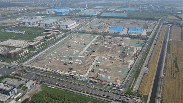 與此同時,作為通威太陽能(組件)三大新建基地之一,南通基地目前現場樁基施工已結束,車間基礎施工已完成,M3車間鋼柱安裝70%,基地建設持續安全高效推進。