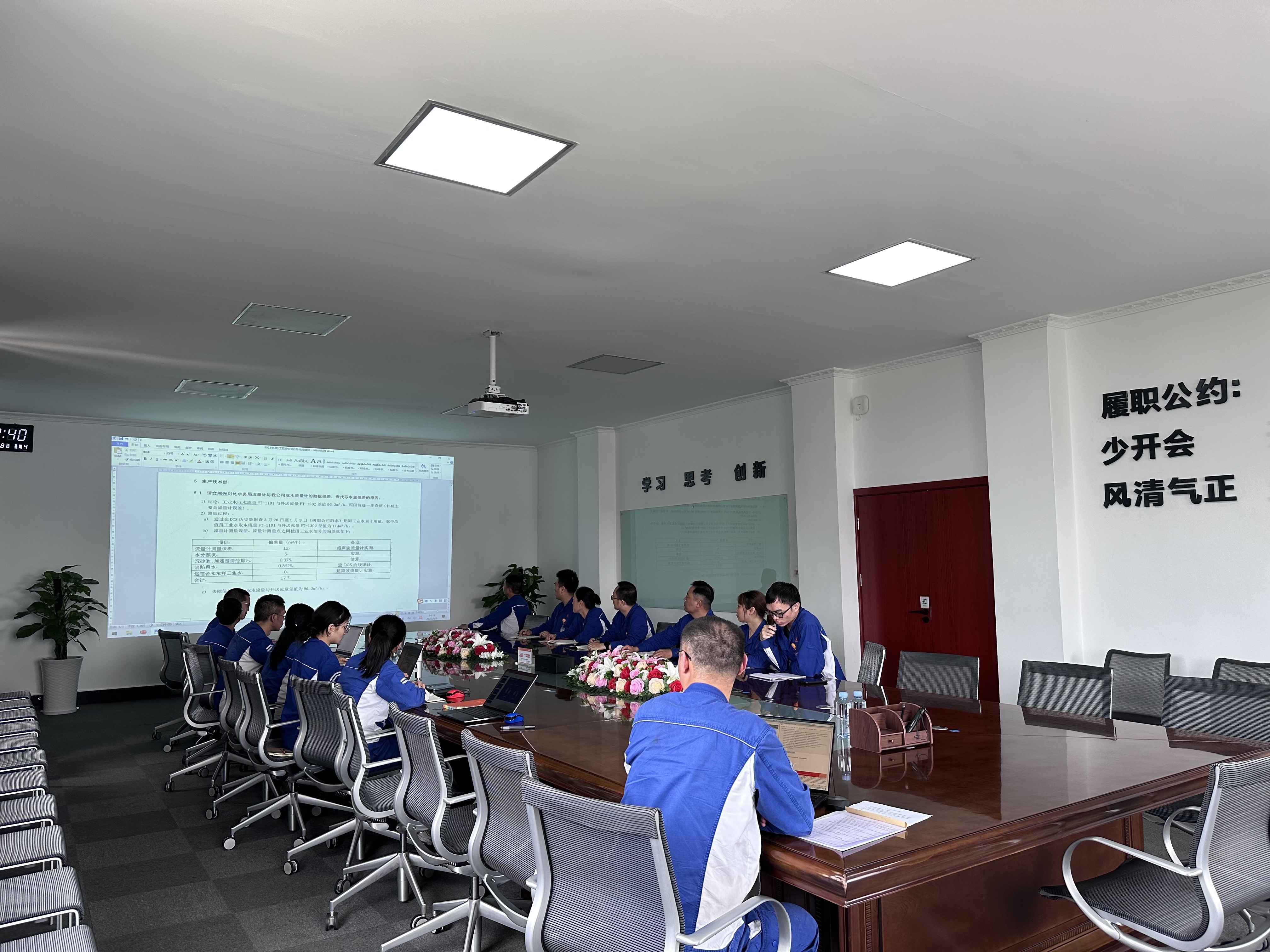 6月8日,永祥樹脂組織各車間召開5月工藝分析會,旨在總結(jié)工藝控制存在的不足,制定和落實改善措施,確保生產(chǎn)裝置安全、穩(wěn)定運行。公司總經(jīng)理助理文龍出席,生產(chǎn)技術部專業(yè)工程師、各車間工藝技術人員參會,會議由生產(chǎn)技術部副經(jīng)理邱銀全主持。